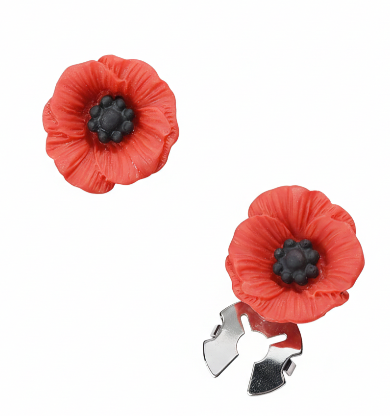 Celebrate remembrance and style with these 2-piece red poppy flower button cover cufflinks. They add a cute yet romantic touch to any shirt sleeve. Lightweight for everyday wear, these fashion accessories are both symbolic and stylish; perfect as a gift or personal statement piece