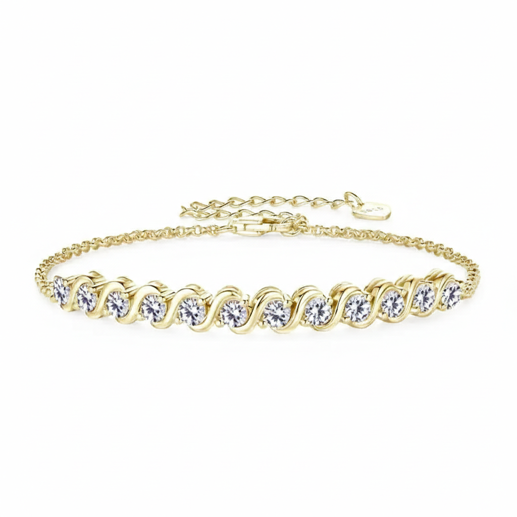 Simple & elegant bracelet crafted from 100% 925 sterling silver, featuring a sparkling 1.2 carat round-cut moissanite. Lightweight, this minimalist twisted chain design is versatile for parties or everyday wear. It offers brilliance and durability. Includes bracelet, gift package, and cloth