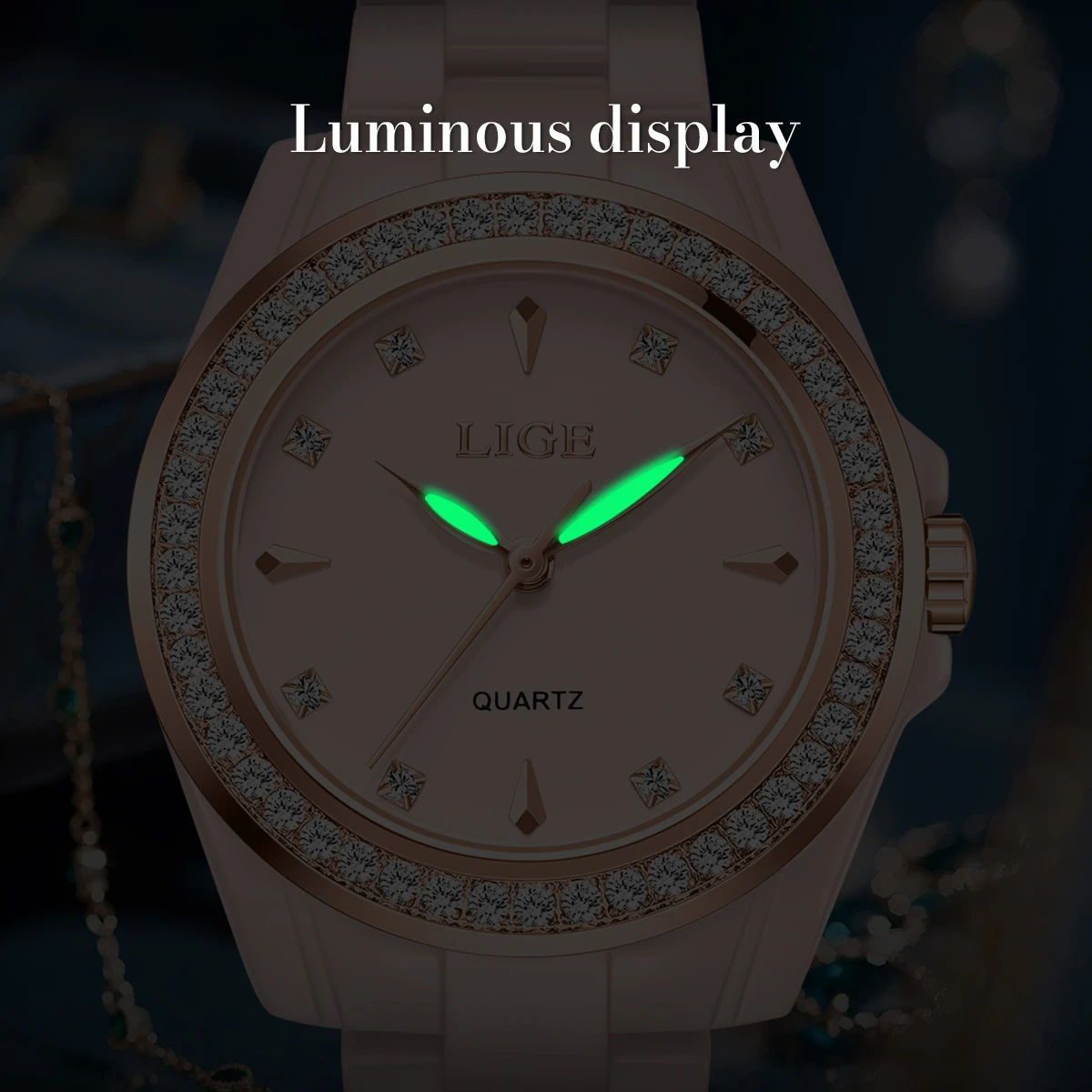 Elena Ceramic Watch | Diamond-Accented Dial | Luminous Hands | Shock Resistant | 3Bar Water Resistant | Weight: 60g