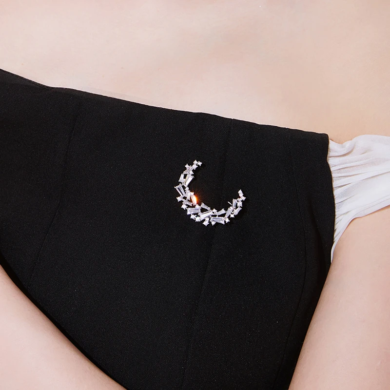 Stylish moon-shaped brooch. Compact and lightweight, this trendy accessory adds a touch of elegance to any outfit. Perfect for fashion, parties, or festive occasions