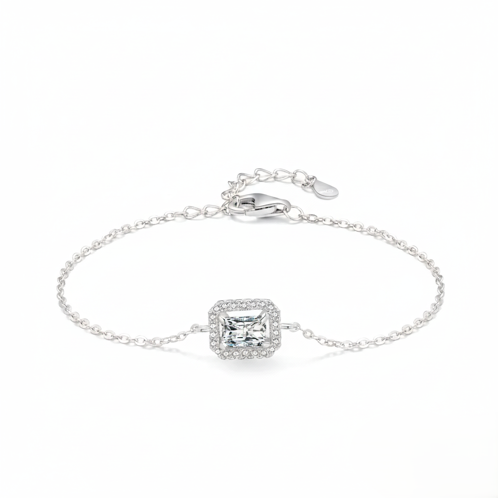 925 Sterling Silver Bracelet | Elegant Link Chain | 1ct Rectangle Zirconia | Crystal Accents