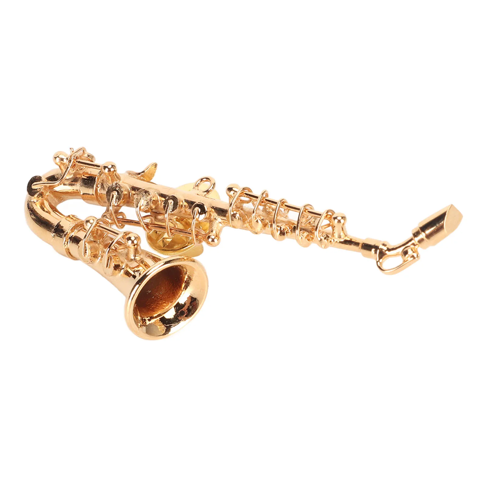 Elegant saxophone-shaped brooch. Lightweight and stylish, this miniature musical accessory is perfect for occasions, parties, or as a unique gift. Comes with a red velvet-lined instrument case for added charm