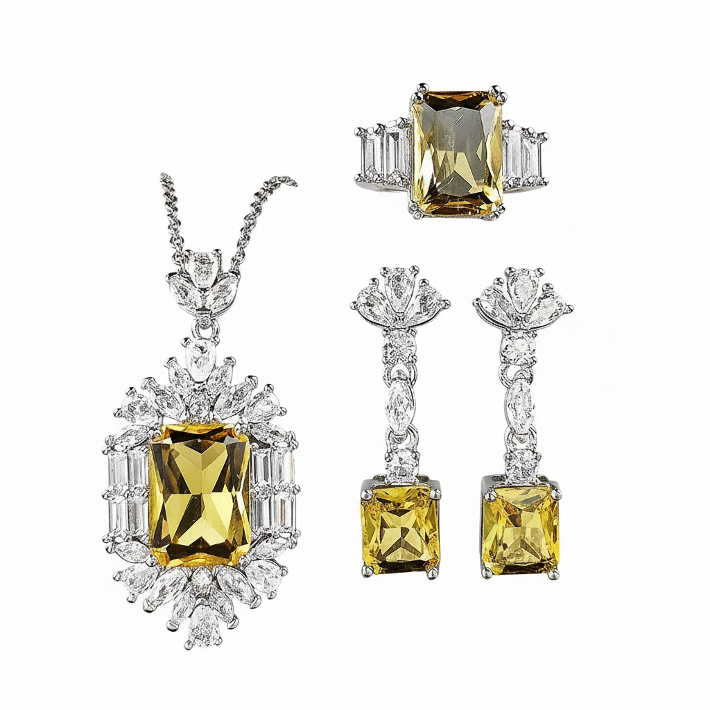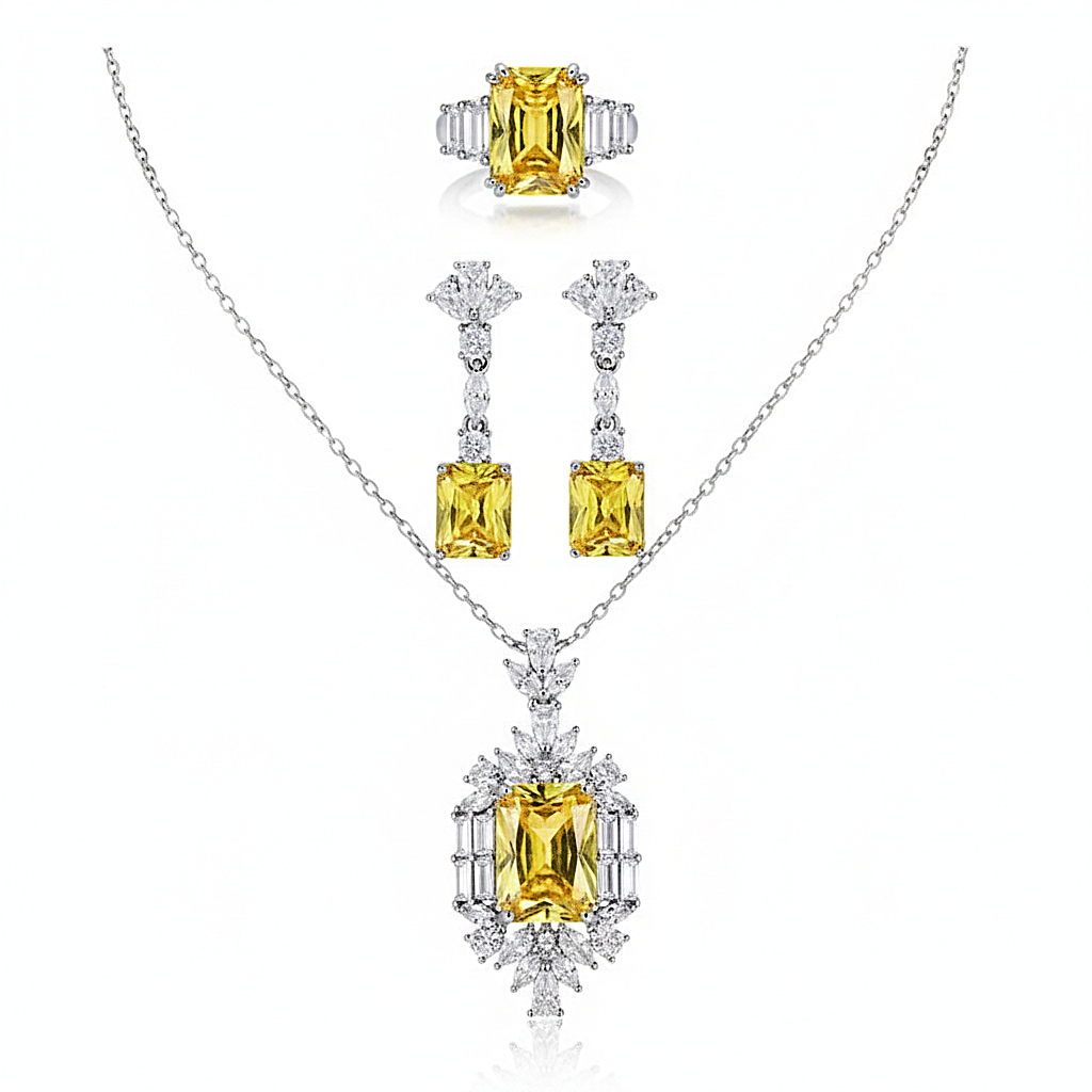 Radiant Luxury Yellow Cubic Zirconia Jewelry Set | Silver-Plated Copper Base