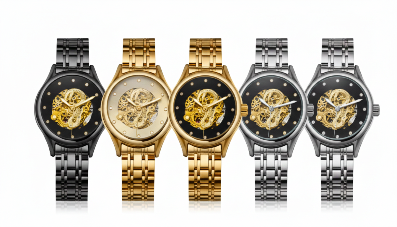 A high-end wristwatch powered by automatic self-wind movement; a luxury watch with dotted crystals