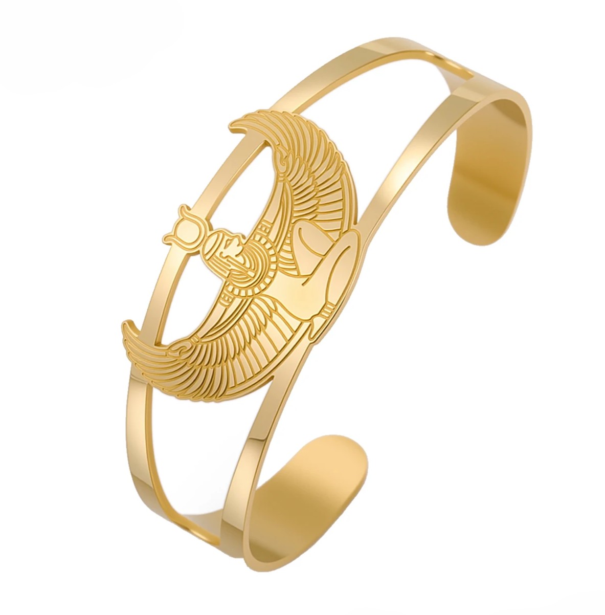 Isis Goddess Cuff Bangle | Stainless Steel Bracelet | Ancient Egyptian Symbol of Protection & Elegance