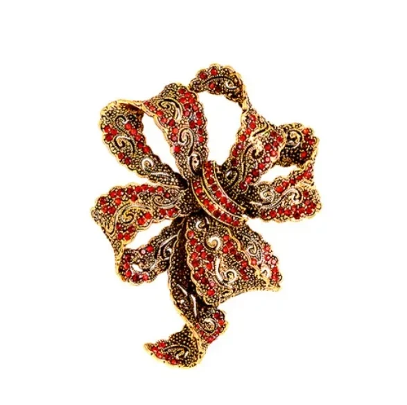 A luxury vintage bow brooch adorned with sparkling rhinestones. Designed as a versatile lapel pin, coat buckle, or clothing accessory. Perfect for occasions, birthdays, anniversaries, or adding a touch of elegance to everyday fashion